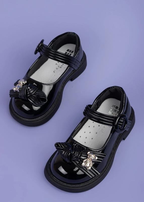Туфлі для дівчаток Китай Чорні Матеріал верху - екошкіра ( лак ) Устілка - шкіра, супінатор є Висота каблука - 2 см Підошва - ПВХ Розміри 22-25