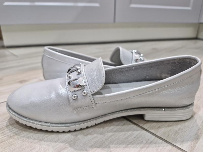 Туфлі святкові сріблястого кольору. Вдягені лише раз. Написано 37р. але сильно маломірять, устілка - 22 см.