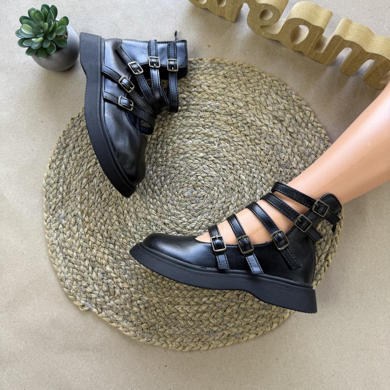 Чорні туфлі з ремінцями – стиль, що не залишить байдужим. Легка підошва, надійна фіксація, добре тримають ногу. Устілка шкіра, імітація супінатору. Ззаду застібка – блискавка. Замір устілки: 31 – 19,0 32 – 19,5 33 – 20,0 34 – 21,0 35 – 21,5 36 – 22,0