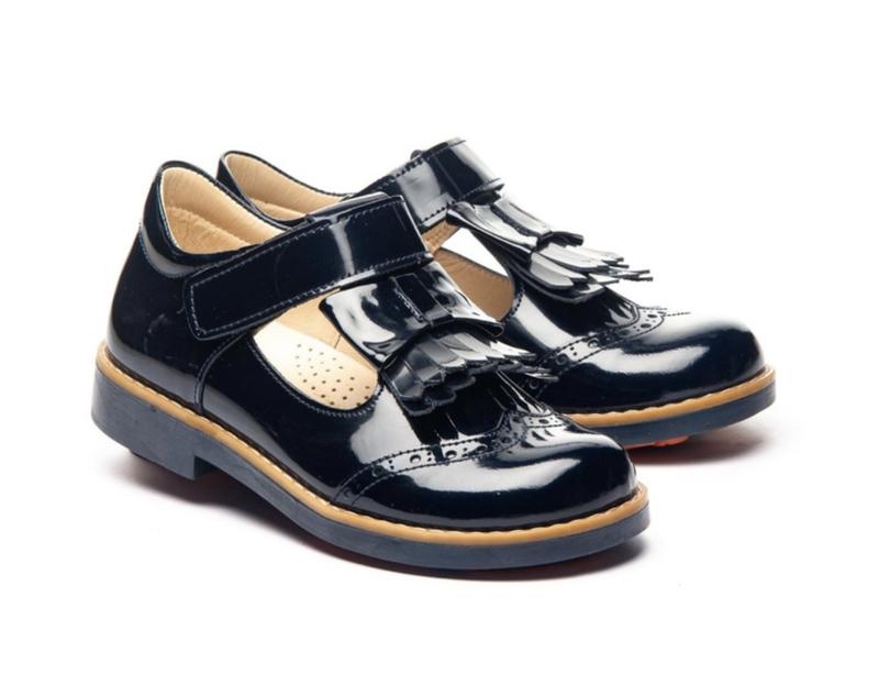 Туфлі на дівчинку. Повністю шкіряні (зовні і зсередини). Колір-чорний лак.Дуже зручні,не стискають пальчики,мʼякі, жорстка пʼята, що гарно фіксує ніжку. Застібка - липучка.Дуже стильні та ідеальні для школи, і не тільки. Виглядають добротно. Розмір 34