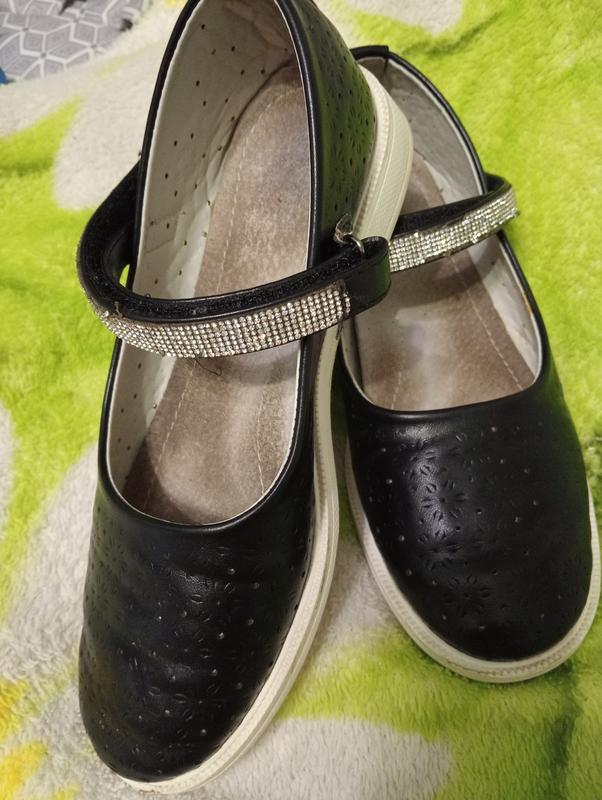 Чорні туфлі для дівчинки. Стан хороший, застібка на липучці Устілка 22см
