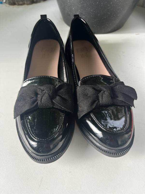 Дуже гарні лаковані туфлі, прикрашені бантом. Стан новий, але є нюанси на лакованій поверховості, на фото намагалась передати, в реалі вони не так помітні. Розмір 36, по устілці 22,5 см.