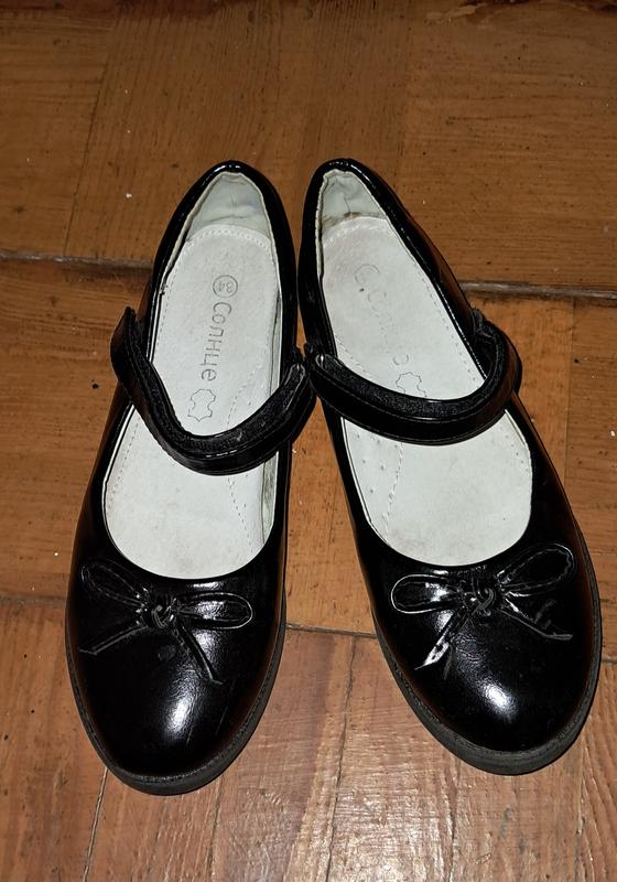Туфлі для дівчинки, чорного кольору,легкі,зручні, шкірозамінник лакований. Б/в у відмінному стані. Для школи - ідеально. Розмір -34 Довжина устілки -22 см.