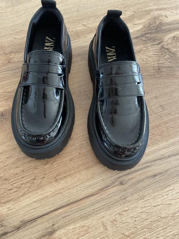 Zara лофери, 33 розмір, устілка 20.9 см На пʼяточках не буде мозолів завдяки мʼякій основі в середині. Дуже зручні і стильні. Чорного кольору. Вдягли 1 раз.
