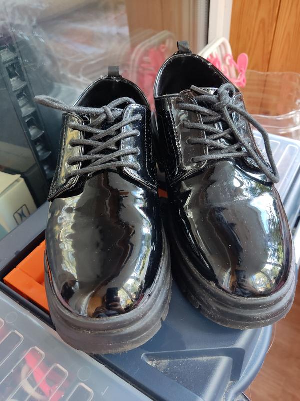 Ботинки для девочки лакированные. Компании F&F. Дочка одета мало потому что шувидко выросла. Размер 34, длина потолков 21 см.