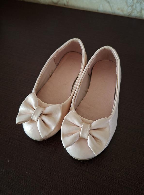 Продам гарні туфлі для дівчинки. Бежево-рожевий колір з перламутром. Розмір 24. На одному носочку невелика полосочка, при використанні не видно.
