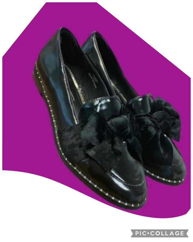 Лофери дівчачі з лакової еко- шкіри від британського бренду River Island. Дуже нарядні, зручні, м'якенька шкіра, устілка анатомічна, з утовщеннями по стопі для максимальної зручності та комфорту ніжок. Лофери декоровані великими бантами з оксамиту, золотавими ланцюжками та золотими металевими клепками вздовж всього ранта по підошві. Розмір - 2 (UK), 34,5 (EUR). Довжина устілки - 22 см. Висота підбору - 2 см. RRP (ціна виробника на ціннику) - 22 фунта (орієнтовно 1300 грн). Лофери нові, всі етикетки та наліпки присутні. В наявності дві пари одного розміру.