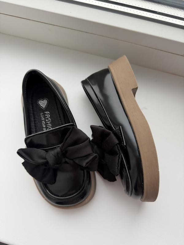 Туфельки 26 розмеру, довжина устілки 16 см.Материал- екошкіра,бантик тканевий.Туфельки нові.Дуже красиві.