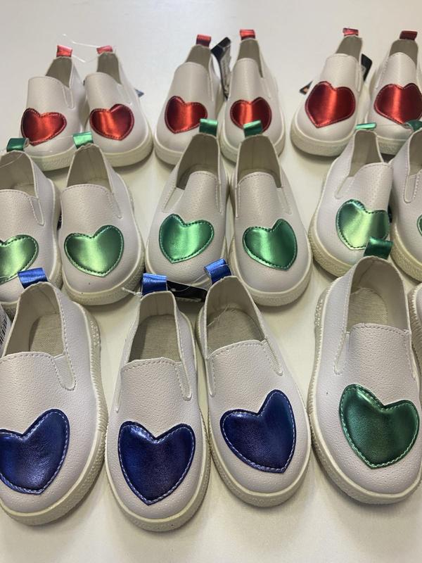 Мокасини для дівчаток з сердечками,білого кольору ,серце: Синє 21,22р Червоне 23,25,26р Зелене 22,23,24,25р Гуртом 9шт