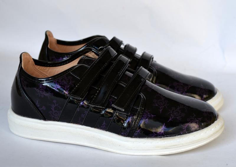 Туфли м+д (b&g) размеры 31-36 . Материал верха: качественный заменитель, покрытый лаком. Супинатор, кожаная стелька. На 3-х липучках. Цвет: черный, с фиолетовым рисунком. Размерная сетка (реальная длина внутренней стельки от края до края): 31р (20см) 33р (21см)