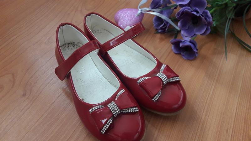 Ошатні такі туфлі дівчинці у відмінному стані ,зовні як новенькі,кожзам лак,липучки в порядку, стрази на місці ,одягалися рівно 2 рази,один з яких в приміщенні на конкурс.Є нюанс косметичний, дитина зробив в танці темну смужку з одного боці туфельки,показала на фото ,відповіла спалахом, в реальності набагато менш помітно, в очі не впадає. Прибрати не намагалася,можливо і піде якщо чимось потерти .В іншому як нові.Ньюанс враховано в ціні.Оазмер вказаний 36,але маломерит.по устілці 21,5
