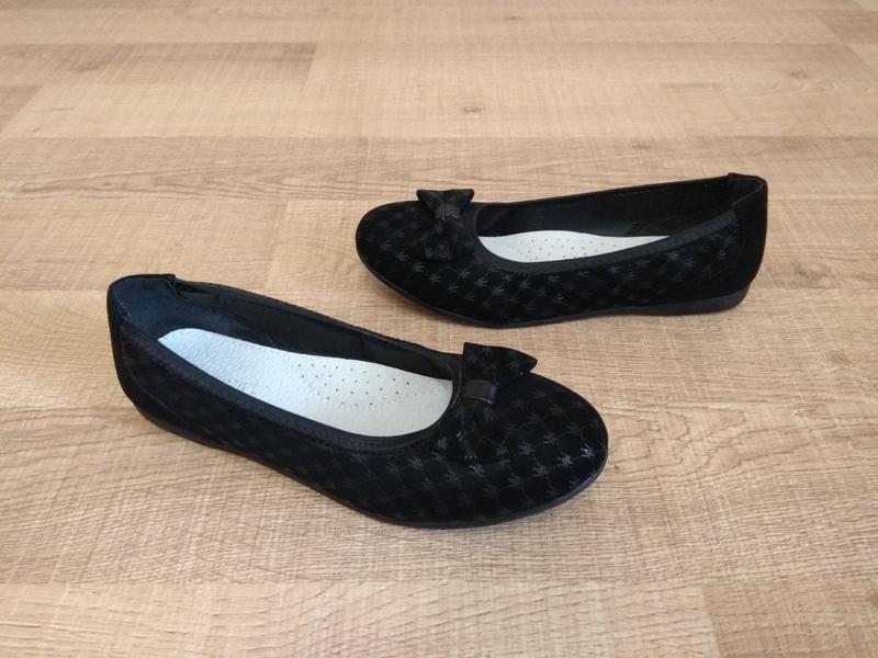 Балетки Tom.m Розмір - 36 Довжина по внутрішньому устілці - 22,5 см Ширина підошви в найширшому місці - 7,8 см Колір - чорний. Матеріал верху - штучна замша. Балетки у відмінному стані.