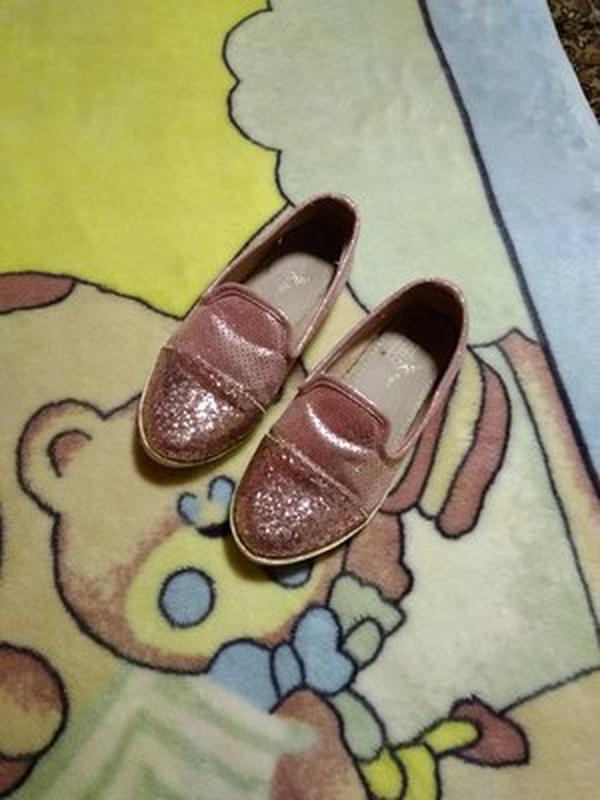 туфельки с блестящим верхом,стелька 18 см, кожаная