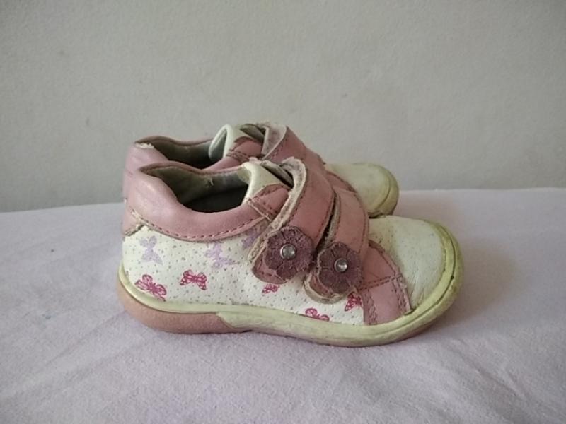 Туфлі черевики 21-22 розмір 13 см устілка метелики в хорошому стані. Є незначні потертості - видно на фото. Кожзам. По внутрішній устілці - 13 див.