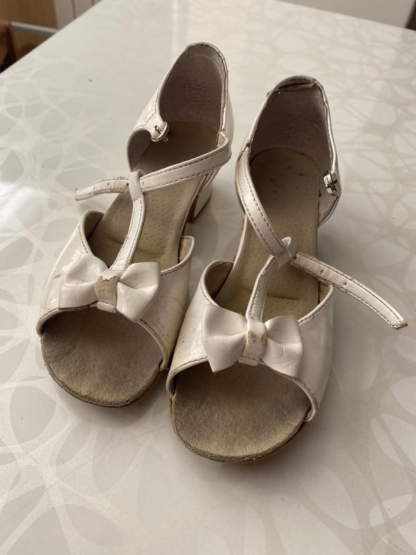 Продам танцювальні туфлі на дівчинку 19 см ніжка. Натуральна шкіра, дуже м'які та зручні. Займалися в них пів року бальними танцями.