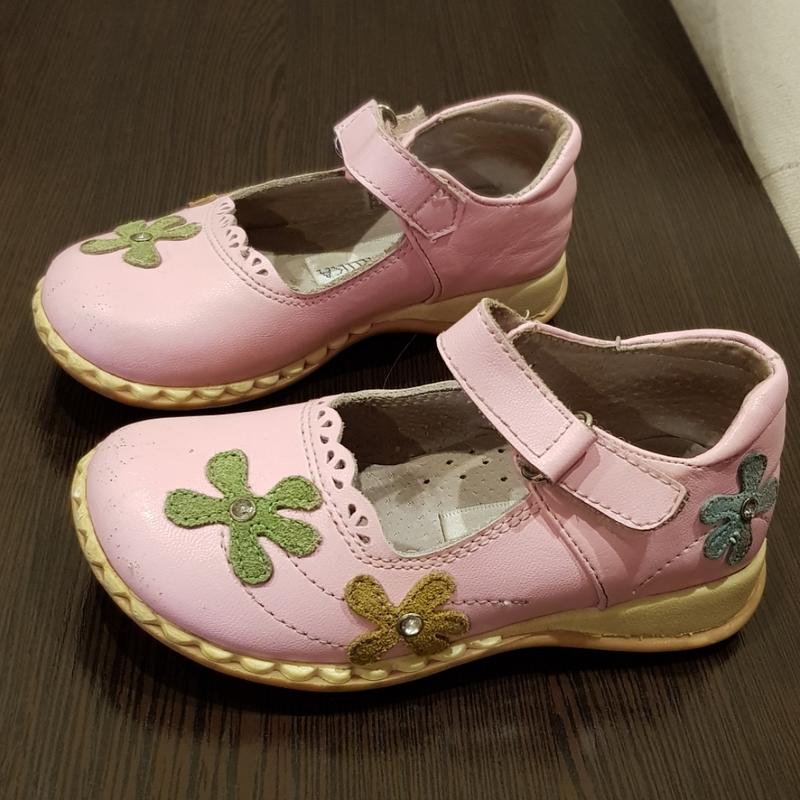 Рожеві туфельки Мілашка рожевого кольору розміру 26. Стелька 14,5 см. Всередині все ціле. Нічого не відклеєно. Трошки збиті носочки. Шкіра.