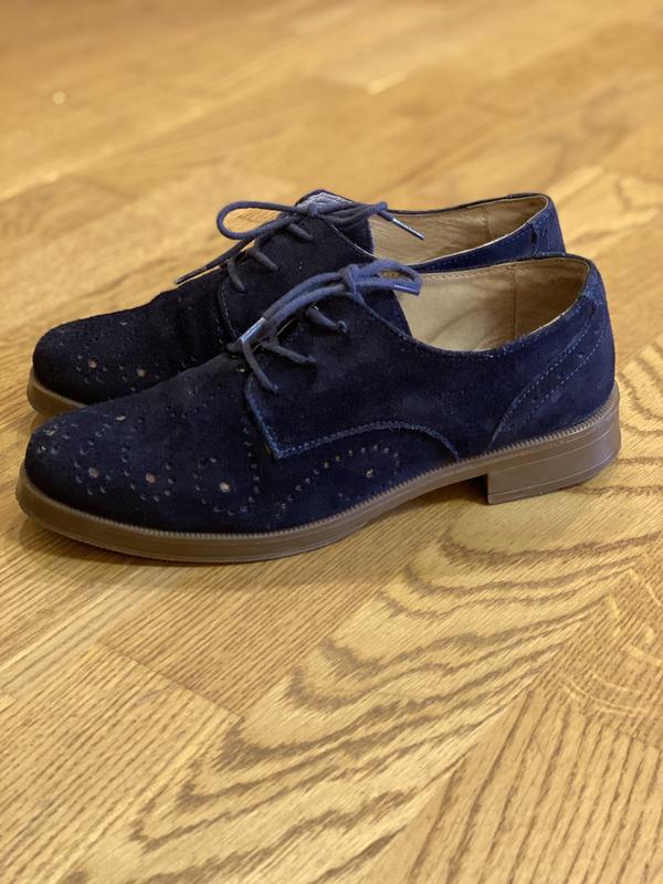 Замшеві туфлі,всередині шкіра,зручні і м'які!Без нюансів і потертостей,подряпин.Сліди шкарпетки мінімальні
