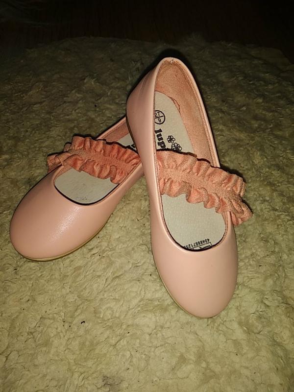 Нові туфлі,світло рожевого кольору.Спереді резиночка,яка тримає ніжку.Куплені в Польщі, розмір 27 стелька 17 см.На останньому фото видно дефект бо лежали без коробки як купили,але при носці його не видно.