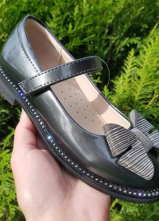 Туфлі для дівчинки неймовірно красиві та якісні. Шкіра комбінована. Устілка шкіряна із супінатором. Виглядають шикарно ! Доступні в розмірах : 29 р - 18см ( 2 шт ) 30 р - 19 см ( 2 шт ) 31 р - 19,5 см ( 2 шт ) 32 р - 20 см ( 2 шт ) 33 р - 21 см ( 2 шт )
