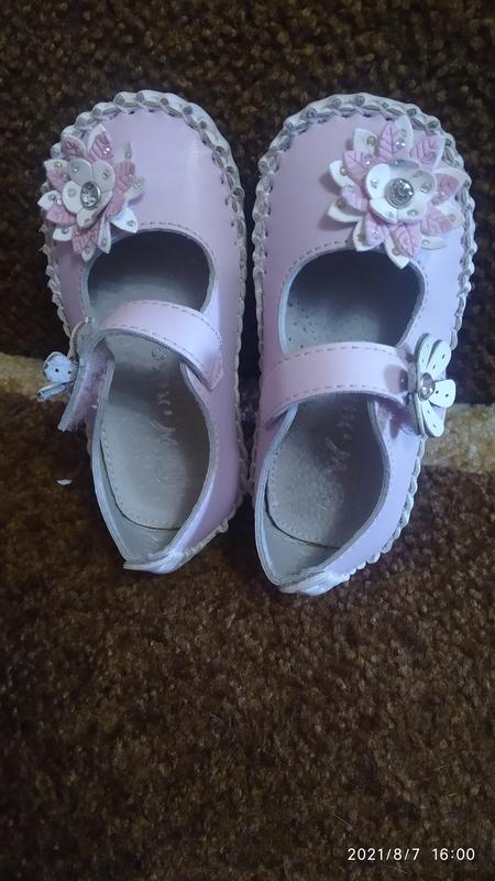 туфлі - балетки - мокасини, шкіряні стан нових один раз одягнули і настали холоди купували минулого літа оттопали все літо, це купили в кінці серпня другі такі ж, дуже класні, зручні, м'які, шкіряні, ніжка не потіє у дитини в шкір.заме або церати,стільки ортопедична носили навіть без шкарпеток. по устілці 13 див.