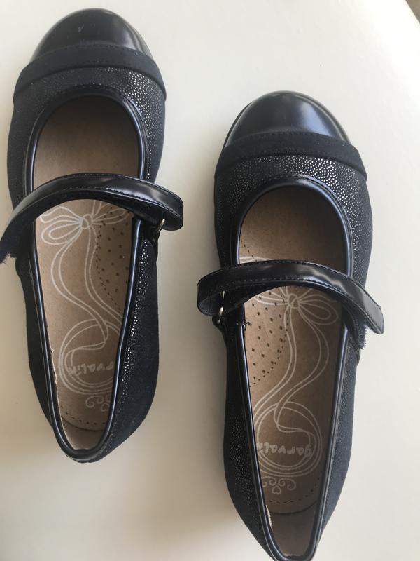 Туфельки на дівчинку Garvalin, розмір 29, устілка 18 см Колір синій, на ніжці ідеальні. Купували дитині в школу, але на жаль пролетіли з розміром, в Інтертопі ціна 1500 грн.Натуральна шкіра. Нові!