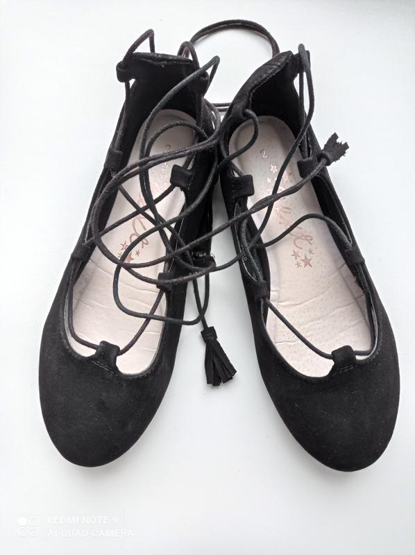 Стильні замшеві балетки на зав'язках. Підійдуть на вузьку ,худеньку ніжку. По встілці 22 см