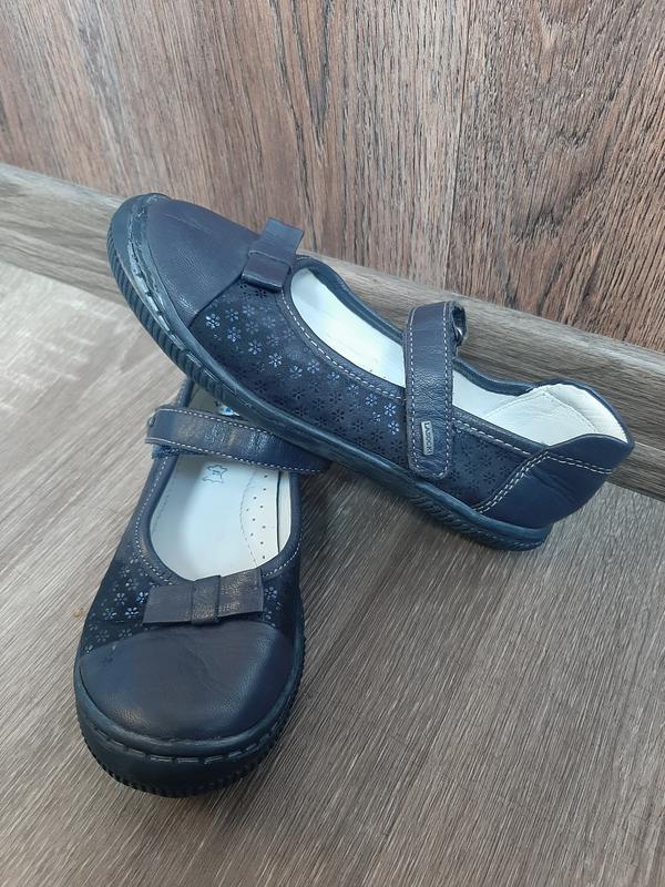 Шкіряні туфлі з ремінцем, всередині м'яка зручна устілка, взуття оченята комфортна. Підошва, липучки і шкарпетки в ідеалі. Носилися цієї весни і недовго. Устілка 19 см