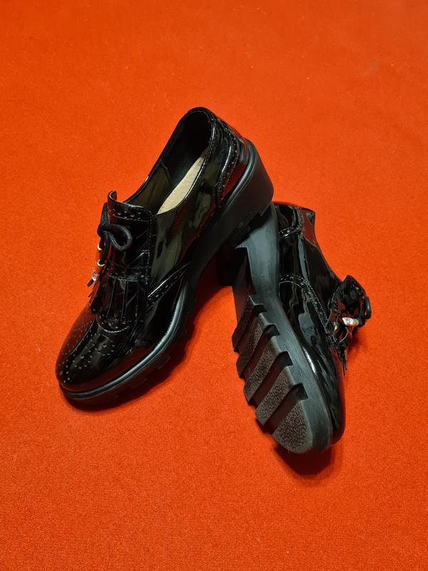 Лаковані туфлі оксфортды. Розмір 34, по устілці 23,0 див. Верх кожзам, всередині шкіра, устілка ортопедичний. Б/у, у відмінному стані!