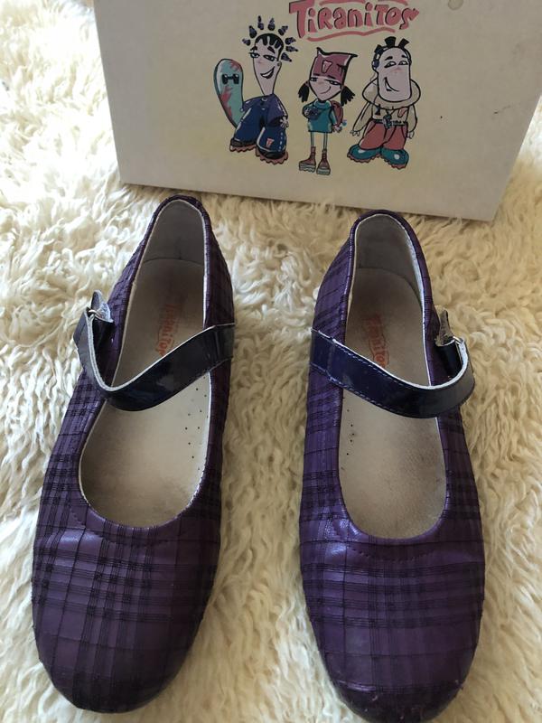 Туфлі на дівчинку темної фіолетового кольору стан липучки ідеальне всього туфля в загальному теж ідеальна якщо не вважати носок на нас ким передала на фото трохи по відривалися смужки смужки 23 см по устілці