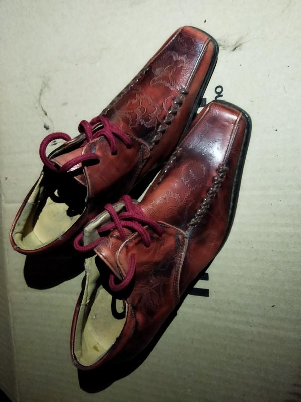 туфли изготовлены с искусственной кожи ,ращмеоы есть от 31 до 36 . Модель маломерная
