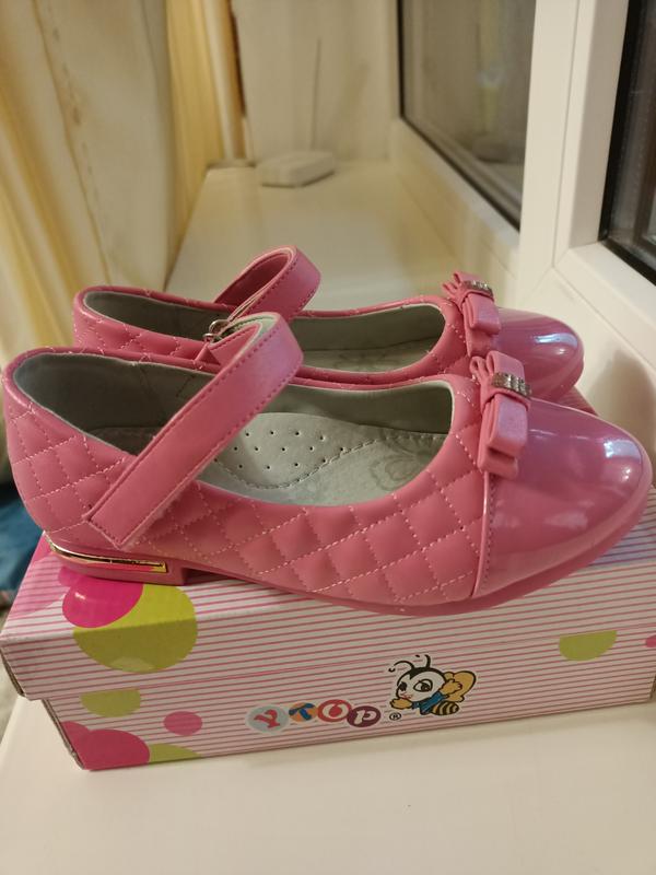 Чепурненькі черевички, фірми Y. TOP. Всередині повністю шкіряні, анатомічна шкіряна устілка з супінатором, довжина устілки - 19 див. Матеріал :Зверху високоякісна Еко шкіра. Підошва – не «дубова», пластична, зносостійка, з протекторами проти ковзання. Зроблені якісно і акуратно, всі рядки рівні, дуже легкі, майже невагомі на нозі у дитини. Стан НОВИХ !!!