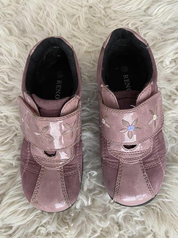 Фото на тілі нема Носики округлені Платформа невисока Фіксуються на липучки Замша+ лак Стильний і зручний фасон Підійде на 31-32 розмір Стелька 20-20,5 см) Висота 8 см) Ширина підошви 8,4 см) Сліди носіння незначні на фото вказано
