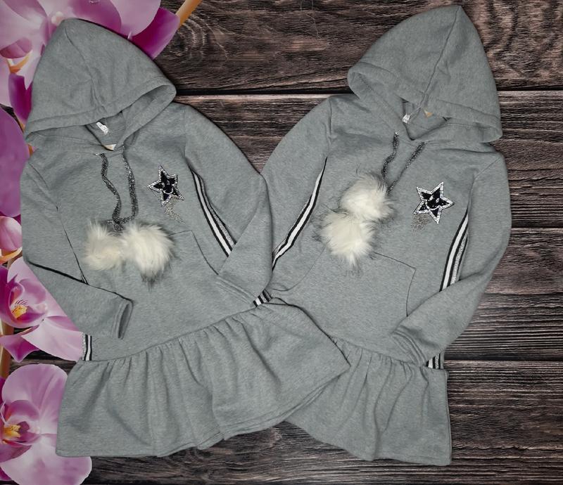 В наявності💙💛 Тепла тунічка тканина 3х-нитка на байці , карман кенгуру , Прикрашена аплікацією зі стразіками і помпонами Заміри Довжина /рукав/п********** 122-58/39/31 128-61/42/32 134-63/43/33 140-64/46/34
