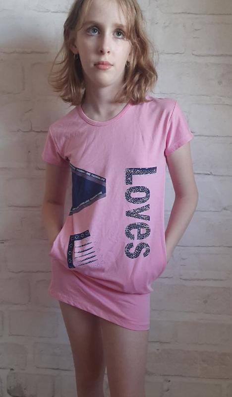 Сукня туніка з кишенями. Малюнок накат, декорована стразами. Туреччина. Розмір: 📌128 см: НОГ 32 см, довжина 62 см. 📌140 см: НОГ 33 см, довжина 64 см. 📌152 см: НОГ 34 см, довжина 66 см.