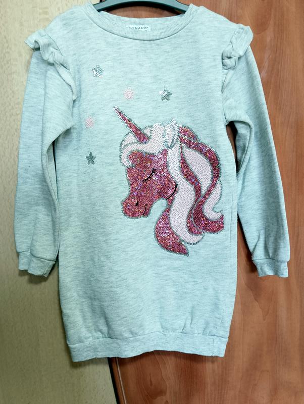 Платье туника с единорогом со стразами для девочки 7-8 лет 128 см