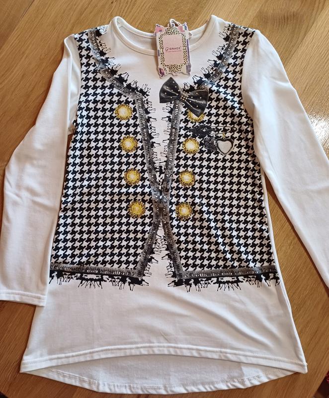 Туніки для дівчаток GRACE Дуже красиві і зручні туніки для дівчаток, а акценти у вигляді принта - ефектним, що привертає увагу, виділяє в компанії однолітків. Виріз горловини круглої форми дає можливість легко надягати модну туніку. Вона чудово підійде дівчатам з будь-яким типом фігури, буде дуже актуальною річчю у Вашому гардеробі.