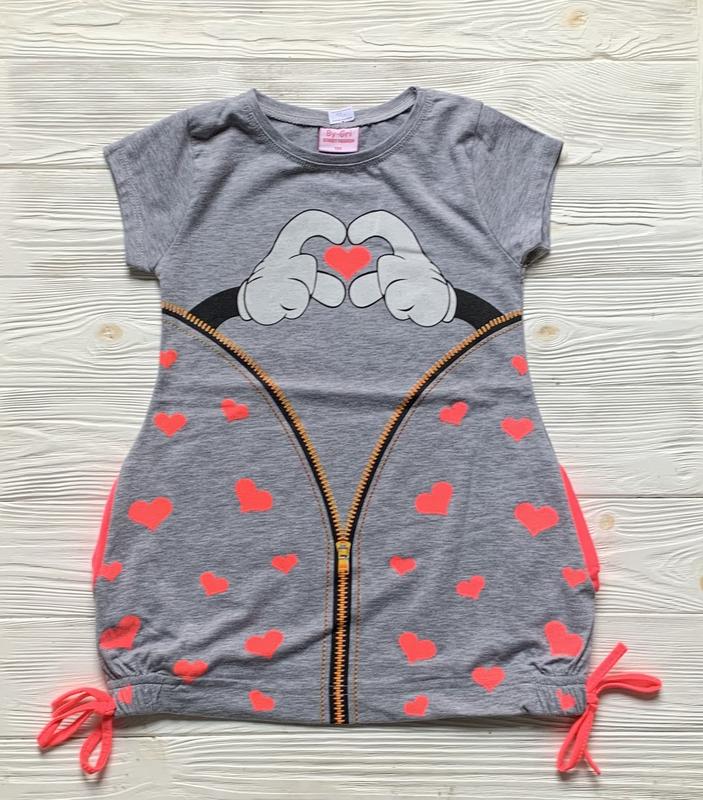 Туніка футболка для дівчинки Розмір 110 см Довжина 52 см Ширина в талії 31 см Розмір 116 см Довжина 54 см Ширина в талії 32 см Склад: 95% бавовна, 5% еластан Виробник: Туреччина