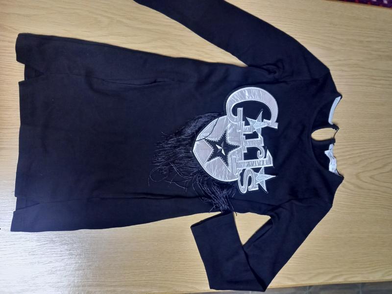 Гламурна чорна туніка для дівчинки. З гламурними нашивками та кишеньками збоку. Туреччина. Напівобхват грудей - 31, талії - 30. Довжина - 61.