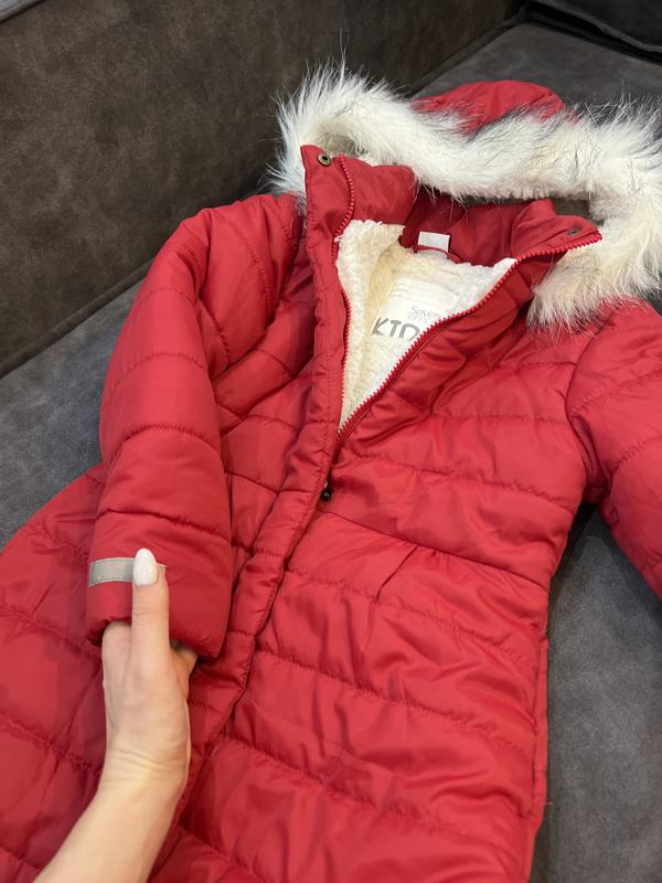 Стильная удлиненная куртка на девч приталенный есть искусственный мех до талии капишон не съемный Выглядит очень красиво и ярко! Длж 65 Рукав 46 Ширина 38 Плечи 36