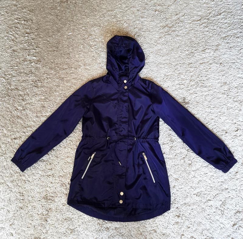 Куртка вітровка Reserved, плащовка, розм.146, як нова, одягнена кілька разів, колір темно-синій з переливом, капюшон, в талії затягується, ідеальний стан, 400грн.