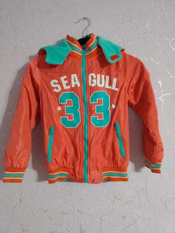 Двухсторонняя ветровка для девочки, одна сторона-плащевка, другой-трикотаж. капюшон отстегивается, замки работают