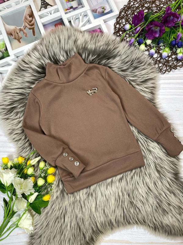саш в наявності 💙💛 Стильний теплий гольфик для красунь 💗 підійде як на свято, так і на кожен день 😍 тканина в'язка на утеплені, оздоблення брошка + гудзики на рукавах Заміри: довжина/рукав від плеча/пог 128 - 45/44/33 134 - 46/45/35 140 - 48/47/36 146 - 49/49/37 152 - 51/52/38 158 - 53/55/39