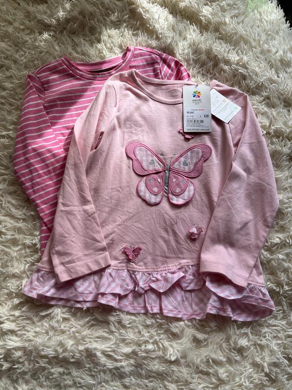 Набір із 2-х одиницю. Кажу як є. Полосата зі зрізаною біркою, нажаль такий інколи приходить товар. Але вона 100 % нова. Продовжую тільки дві разом. За 2 одиниці 150 грн. По замірам вони однакові. Ширина 31 см Довжина від плеча 43 см Рукав разом із плечем 7/45 см