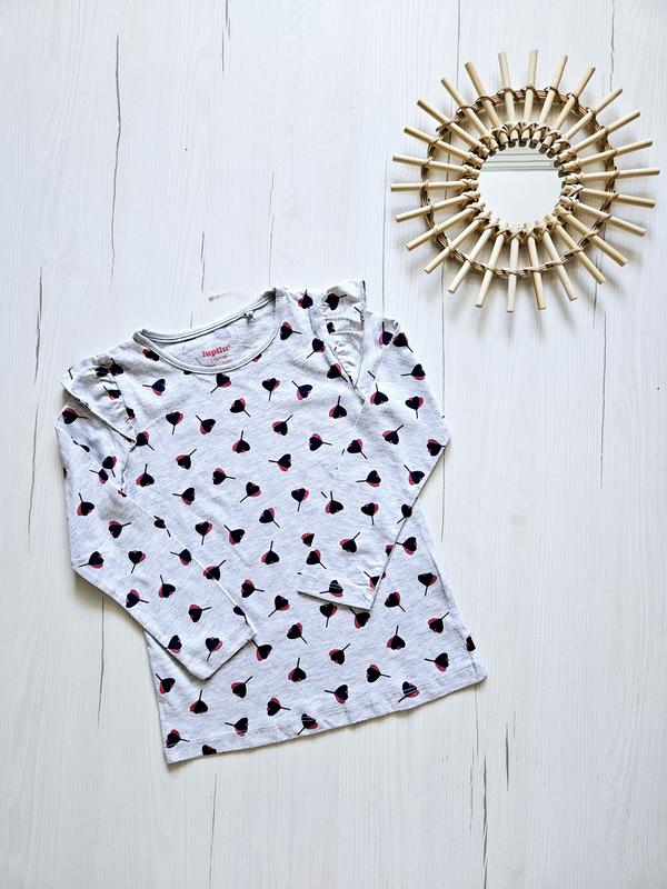 Нові лонгсліви німецького бренду Lupilu для дівчаток Тканина: бавовна Розмір: 116см (5-6років) Заміри: Довжина 47см Напівобхват грудей 33см Довжина рукава від плечового шва 41см Ціна за 1шт.: 230грн Є інші лонгсліви в цьому розмірі для дівчат та хлопчиків Lupilu, Німеччина, OVS, бренд Італія, Cool Club, Польща, та в розмірах від 68см до 180см. Запитуйте.