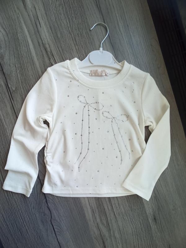 Очень красивый белый праздничный лонгслив со стразами для девочек