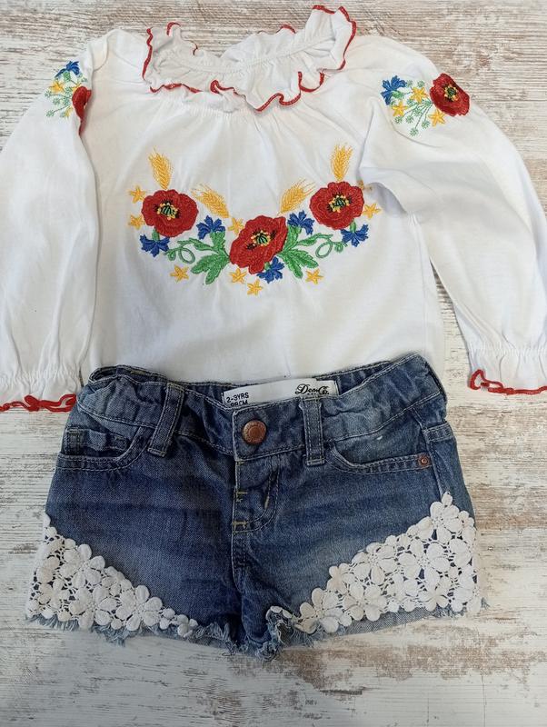 Дуже легенька вишиванка,та стильні шорти,для маленької модниці.На вік 2-3роки.