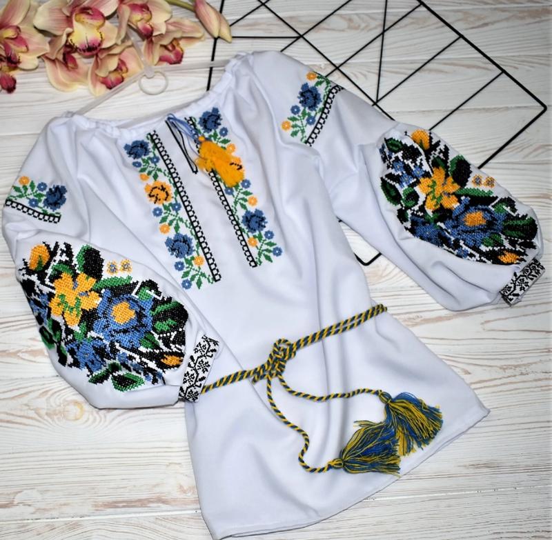 Тканина: Мадонна Додатково: машинна вишивка-виглядає як ручна!! !!!дуже гарна!!!Рукав на липучці. пояс в комплекті. ЗВЕРТАЄМО УВАГУ НА ЗАМІРИ! ✅Заміри: довжина/ширина/рукав від горловини 122--56/40/50 128--57/41/51 134--59/43/53 140--61/44/55 146--62/44/56 152--63/43/57 158--67/44/59 164--68/48/61 Можлива похибка у вимірах +- 1/2 см нульдевятьтричотиривісімсімтринульвісімсім шиємо також на замовлення ціни від 1100 грн