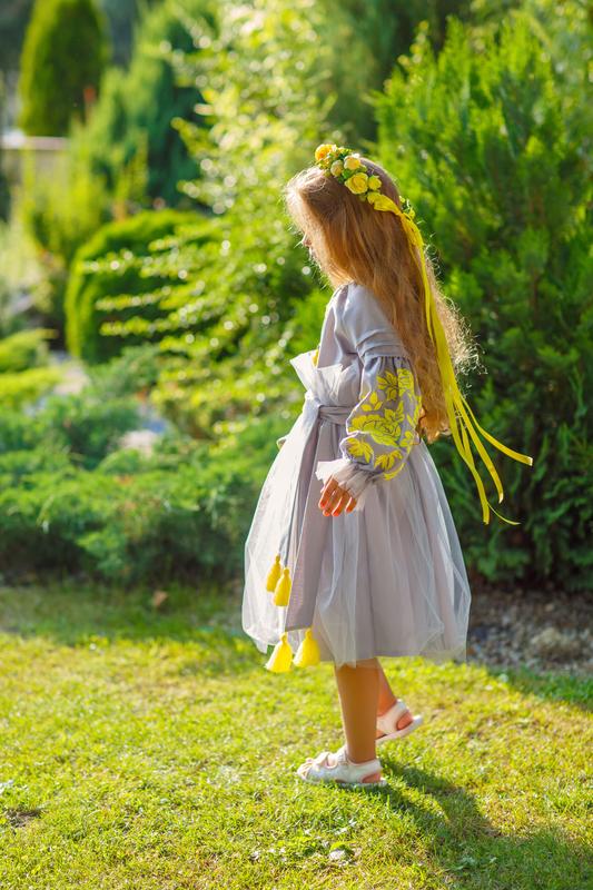 Неймовірна, вишукана сукня-вишиванка для урочистих подій. Виконана на домотканому полотні сірого кольору, оздоблена яскравим рослинним орнаментом. Особливістю моделі є доповнення з євросітки, що візуально надає легкості та оригінальності. При цьому якісний та практичний пошив, подарує впевненість активних рухів дитини. Розмірний ряд: з 86 по 164 Матеріал: домоткане полотно Вишивка: машина, гладь