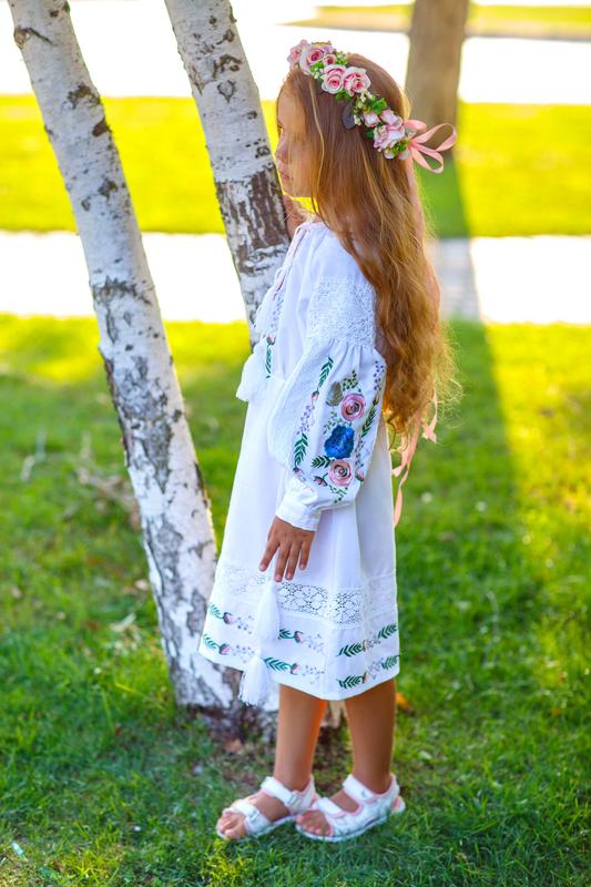 Розмірний ряд з 86 по 164 Сукня для дівчинки Тканина- домоткане полотно Вишивка – машинна Оздоблена мереживом, та машиною вишивкою гладь