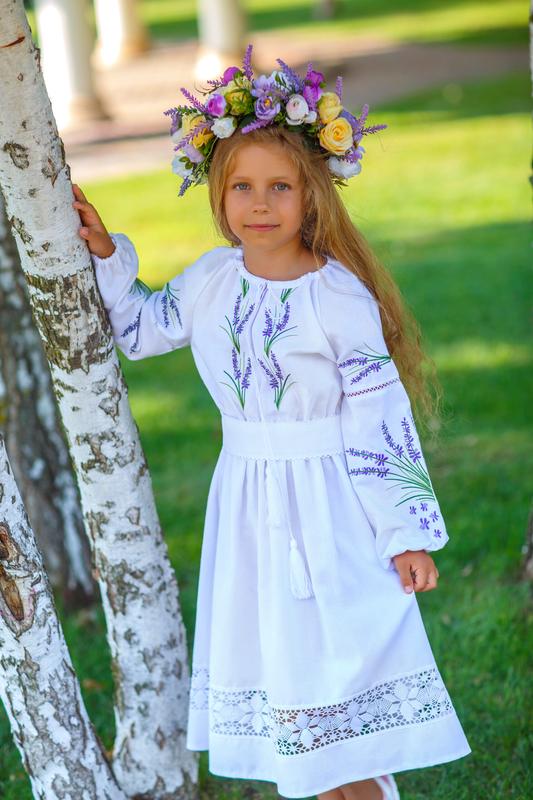 Сукня вишиванка біла лаванда для дівчинки